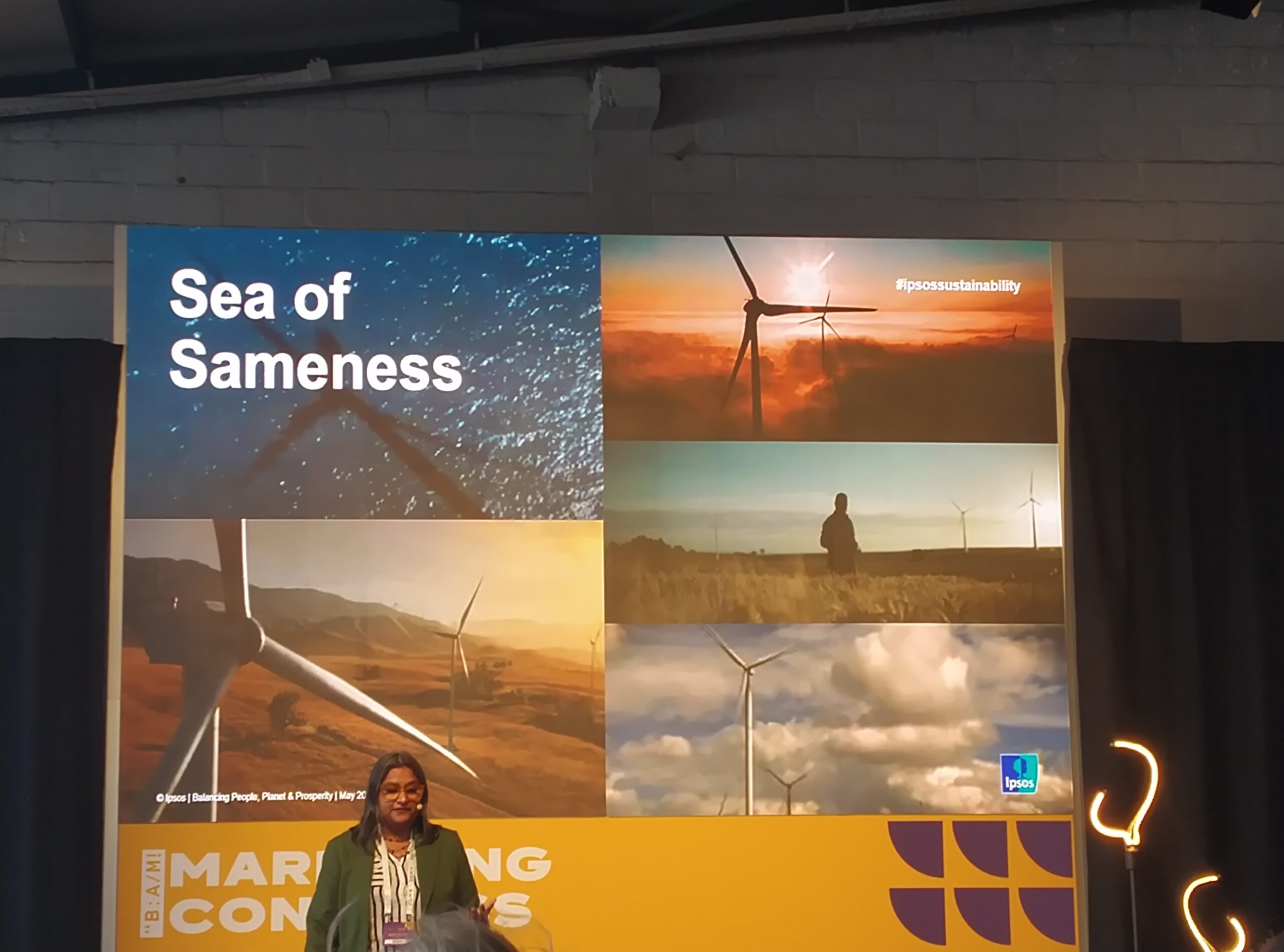« La publicité sur le développement durable se trouve dans un océan de similitude », remarque Samira, soulignant la nécessité pour les marques et les agences de s’affranchir des tropes ESG conventionnels. S’appuyant sur une méta-analyse d’Ipsos portant sur 200 publicités en faveur du développement durable dans 15 pays différents, Samira s’est inquiétée de la tendance actuelle qui voit les efforts créatifs se perdre dans ce qu’elle appelle la « Sea of Sustainability Sameness ».
