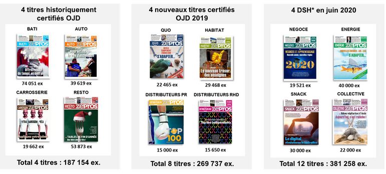 Le groupe Zepros a décidé de faire certifier l’ensemble de la diffusion de ses titres par l’ACPM/OJD d’ici janvier 2021. Selon le groupe, la diffusion contrôlée atteindra 381 000 exemplaires en juin et s’établira autour de 450 000 exemplaires en 2021. L’objectif est d’atteindre à 2 ans le million d’exemplaires.
